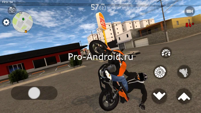 Физика не просто слово в описании — она чувствуется в каждом манёвре. Входишь в поворот на скорости — нужно заранее сбросить газ и перенести вес. Мотоцикл реагирует на каждое касание: чуть больше газа — и балансируешь на заднем колесе. Резина по-разному ведёт себя на асфальте, плитке и грунте, а неровности заставляют подвеску работать.