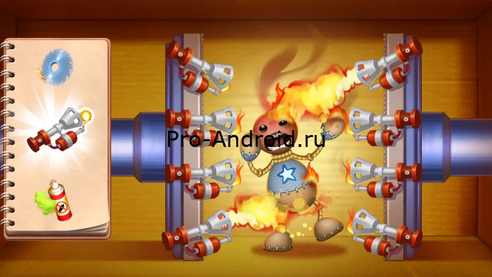 Управление максимально простое — тапайте по экрану для атаки. Кукла пытается уворачиваться, двигаясь из стороны в сторону. Можно тащить ее, подбрасывать, бросать об стены.