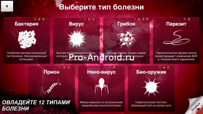 Скачайте взлом Plague Inc на андроид с полной версией, где открыты все болезни и дополнения для создания идеальной пандемии.