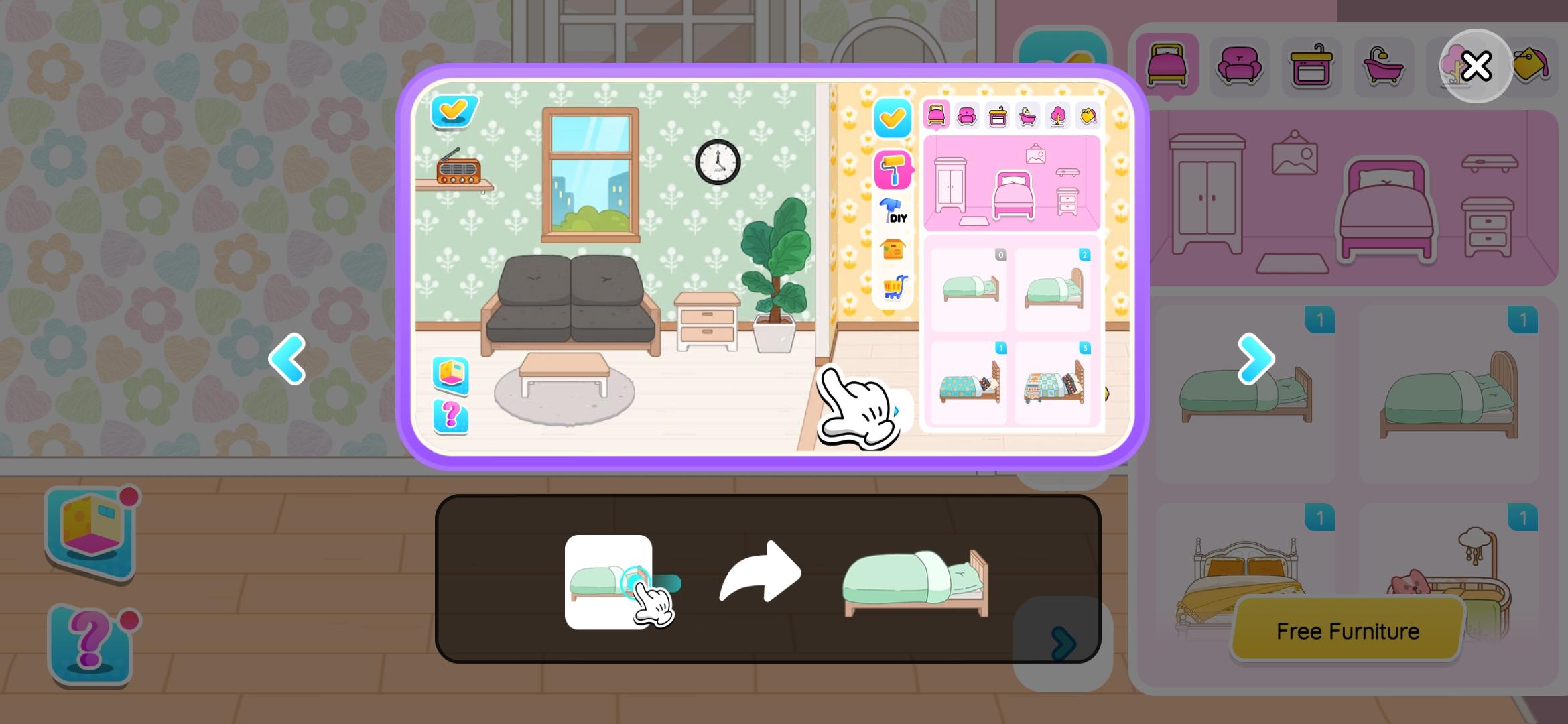 Более 3000 предметов мебели ждут своего применения. Расставляй диваны, столы, ковры, светильники по собственному вкусу. Система позволяет конструировать уникальные предметы через DIY-редактор — добавляй узоры, меняй цвета, комбинируй элементы.