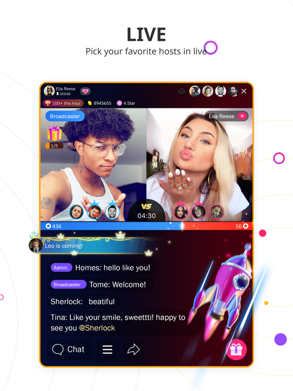 - LIVE PK — баттлы между стримерами с голосованием зрителей