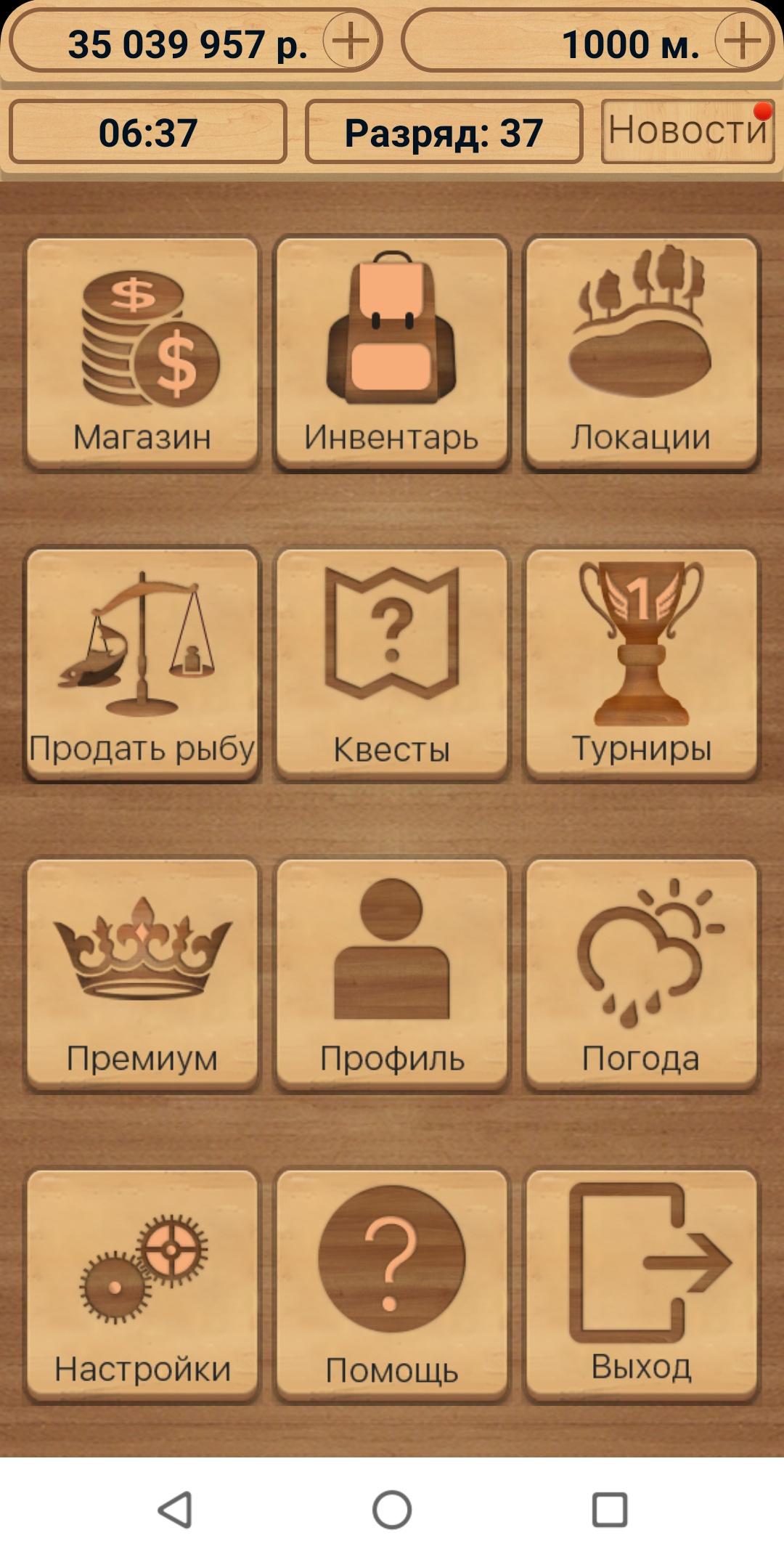 - Погода: влияет на поведение обитателей водоёма. При аномальном атмосферном давлении клёв практически останавливается. Можно проверить текущий прогноз через кнопку в интерфейсе.