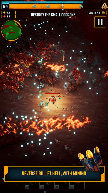 Геймплей освобождает руки от прицеливания. Персонаж палит по ближайшим целям, а вы контролируете движение и собираете материалы. Ключ к победе — грамотный кайтинг через ломающиеся стены и выбор позиций для сбора руды.