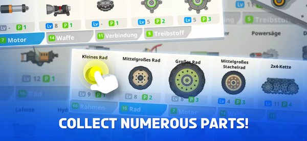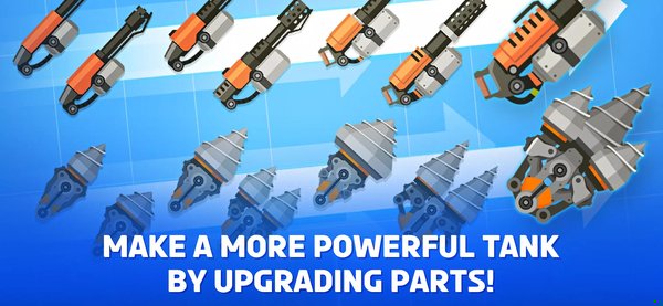 За победы начисляется валюта, а также новые компоненты. Постепенно открывается доступ к продвинутым элементам: мощным двигателям, калиберным пушкам, усиленной броне.