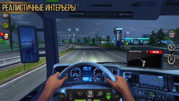 Нужно следить за водителем: он устаёт, хочет есть. Пропустите отдых — эффективность упадёт. Топливо тоже заканчивается, придётся заезжать на заправки. За превышение скорости и нарушения прилетают штрафы. Правда, игроки жалуются: штрафы иногда прилетают на ровном месте — баг, который разработчики пока не исправили.