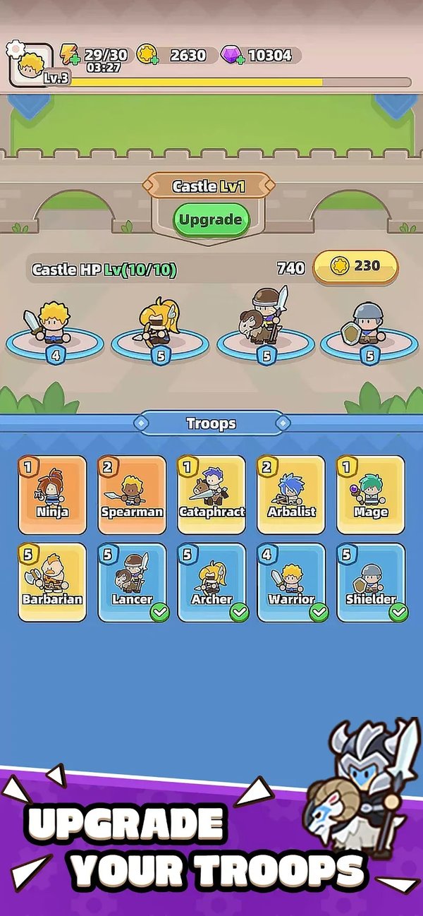 Из минусов: после вступительных этапов баланс сбоит. Ресурсов не хватает, враги резко крепчают, а между попытками вылезает реклама. Ближе к финалу прогресс замедляется. Тем, кто любит контролировать каждый шаг солдата, будет скучновато — армия тут действует автономно.