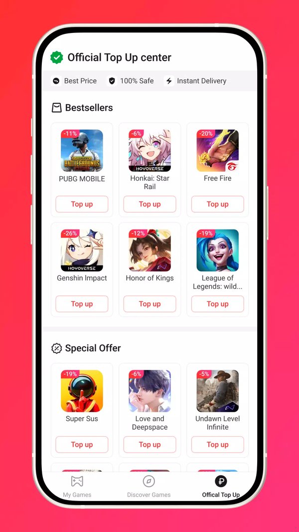 Предназначение приложения — пополнение внутриигровой валюты по сниженным ценам без скрытых комиссий. Покупаете кристаллы Genesis, UC для PUBG, алмазы Free Fire, Delta Coins или осколки снов — получаете кэшбэк баллами.