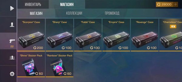 - Арсенал впечатляет. Кроме базовых стволов, в магазине (вкладка "Кастом") найдёте миниган, водяной пистолет и биту. StatTrek-оружие, стикеры с оригинальными эффектами, коктейли Молотова и стикерпаки добавляют разнообразия. Брелоки из коллекций Frosty Chaos и Dragon Rise украшают инвентарь.