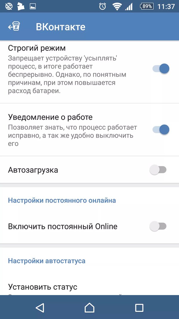 Взломка добавляет возможности, недоступные в оригинале: скачивание музыки, невидимость, подмену клиента, шифрование сообщений. Также можно слушать музыку. Официальное приложение социальной сети вконтакте таких фишек не предлагает.