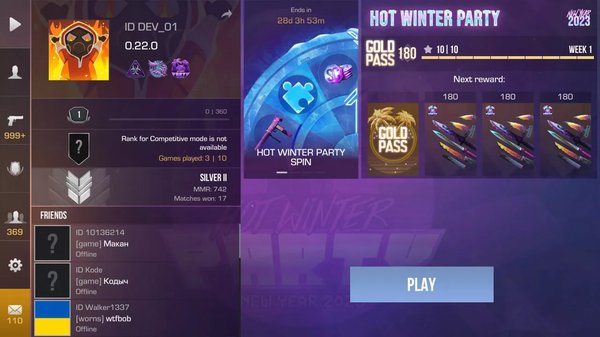 - Контента здесь — завались. Штурмовая винтовка M4A1, пулемёт M60, нож Tanto, тактические перчатки — всё доступно без гринда. Коллекции скинов впечатляют: «Hot Winter Party», «Project Pandora», «Veteran 2023», «Traveller's bag». Боевые пропуски «Dragon Rise» и «Hot Winter Party» дают дополнительные награды за выполнение заданий.