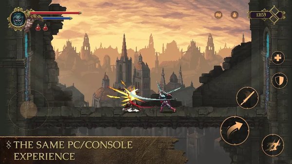 - Визуально Blasphemous — произведение искусства. Пиксельная графика выполнена в стиле средневековых фресок и готической архитектуры. Анимации плавные, хотя до уровня Dead Cells не дотягивают. Религиозные мотивы пронизывают каждый элемент: от дизайна врагов до цитат в описаниях.