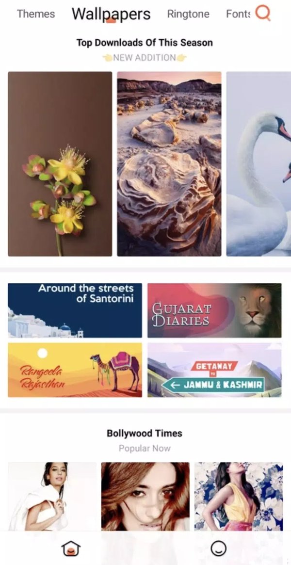 Интерфейс разделён на удобные вкладки. Первая отвечает за смену оформления целиком — выбираете стиль, и ваш смартфон получает новый облик. Остальные вкладки предназначены для точечных изменений: обои, мелодии звонка, шрифты подписей иконок.