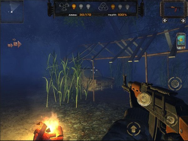 На экране отображаются индикаторы голода и заражения. Здоровье восстанавливаете консервами и лекарствами — аптечек в игре немного, приходится экономить.