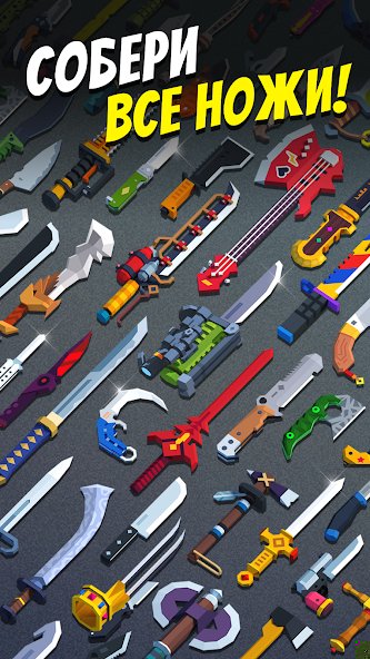 Каждое оружие звучит по-своему при броске. Качественные спецэффекты дополняют визуальную часть. Низкие системные требования (Android 5.1+) гарантируют работу даже на слабых устройствах без лагов. Интернет не требуется — играете где угодно: в метро, парке, школе.