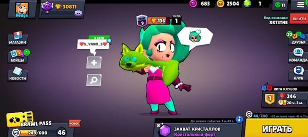 - Разблокированные скины: примеряйте любые образы бравлеров. Важно: изменения видны только вам, другие игроки их не увидят.