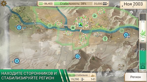 Войска ушли, но мир не наступил. Rebel Inc. от Ndemic Creations — стратегия, в которой вы пытаетесь стабилизировать раздираемый повстанцами регион. Те же авторы, что придумали Plague Inc., только теперь задача обратная: не уничтожать, а спасать. Одни из лучших оценок в жанре мобильных стратегий — 9/10 на Gamereactor и пять звёзд на Pocket Tactics.