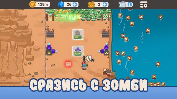 Как только темнеет — начинается оборона. Волны мертвецов атакуют базу, нужно их отбить. Расставляешь защитников, улучшаешь укрепления, собираешь ресурсы с убитых. Победил — получил бонусы, утром снова торговля.