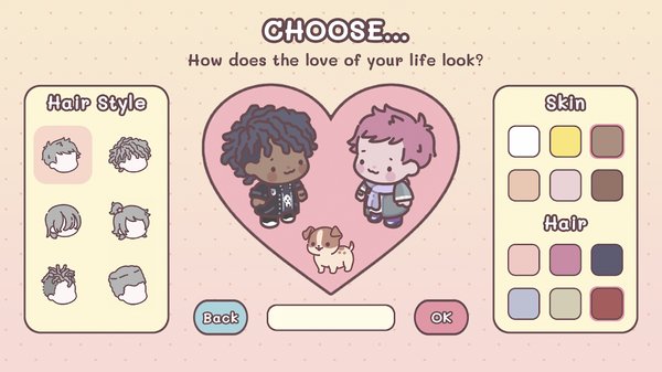 Игровой процесс начинается с редактора: выбираете пол, цвет кожи, причёску, одежду — для себя и партнёра. Тут же определяетесь с питомцем — кошка или собака, несколько расцветок на выбор. После этого парочка заселяется в пустую комнату, которую предстоит обустроить с нуля.