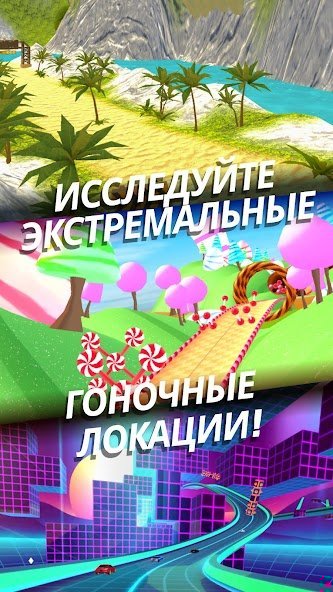 За высокие позиции на финише получаете монеты. Тратите на прокачку двигателя: разгон, максималку, управляемость. Правда, по отзывам, апгрейды почти не влияют на реальную скорость — разница скорее визуальная.