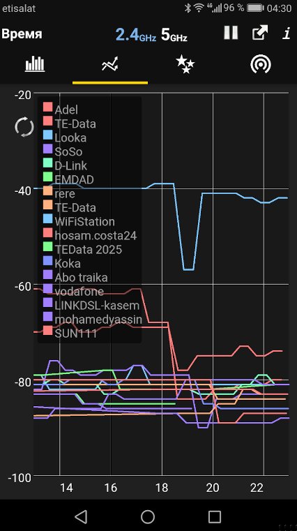 - График уровня сигнала во времени — смотрите, как меняется приём при перемещении