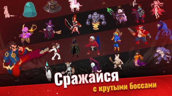 Otherworld Legends — один из лучших рогаликов на Андроид: пиксельная картинка, глубокий билдинг, реиграбельность без потолка. Работает оффлайн, есть русский язык, кооп с друзьями. Без доната играть можно — просто героев открывать придётся дольше.